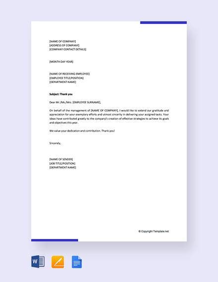 Thank you letter is one of the important letter to contacts to express gratitude to some. Choose from our free employee thank you letter templates to write personalized expressions of gratitude to an employee for his (or her) efforts. You can express excitement and optimism for your.
