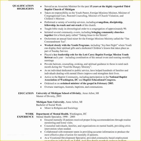 Free Ministry Resume Templates Of Ministry Resume ...