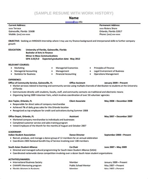 Cv Work History Examples. Most of the CV examples are in PDF format, to view them simply click on the relevant industry sector below to find the one that fits the job your after. The reason a hiring manager looks at your resume is to determine whether your skills and experience are a match for his open The chronological resume format lists your work history with the most recent position at the top.