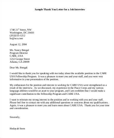 Letter Following Interview. Follow up interview letter is usually written for expressing appreciation and thanks for the The main purpose behind writing a follow up interview letter is to show appreciation for the employer's interest. It is recommended to send a follow up thank-you letter soon as you completed a job interview.